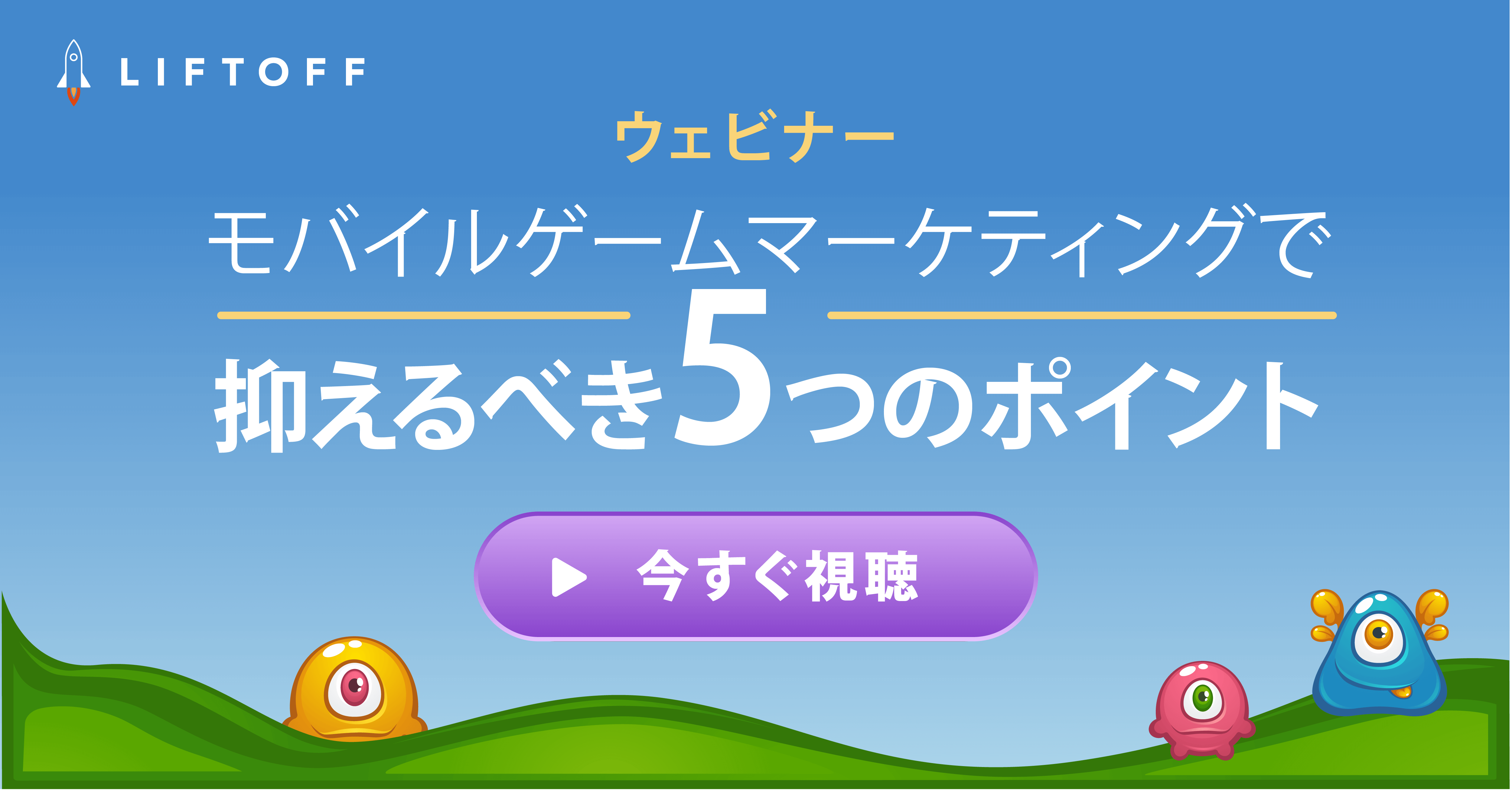 このオンデマンドウェビナーでは、モバイルゲームアプリのマーケティングで成功するための5つのポイントをお伝えします。ウェビナーでは主に以下のことに切り込んでいきます。
