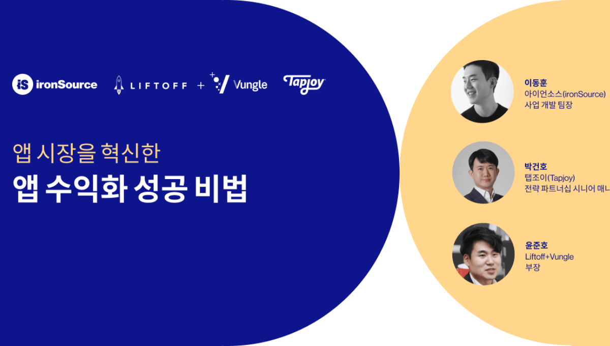 아이언소스(ironSource), 탭조이(Tapjoy), Liftoff+Vungle이 성공적인 앱 수익화 전략과 다양한 비딩 활용법 및 노하우를 공유합니다!